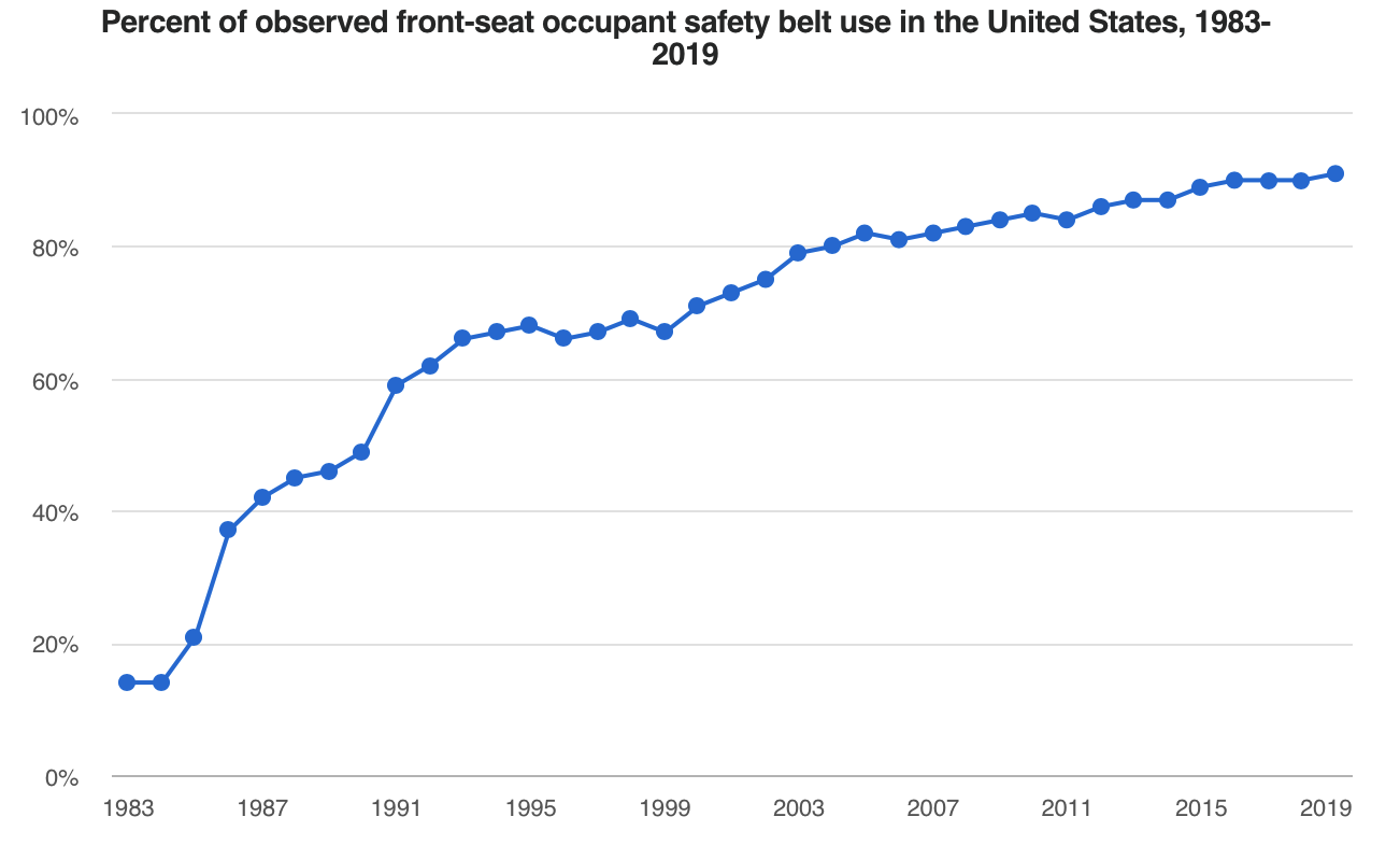For example, there were over 23,000 passenger vehicle occupants killed in 2020, and 51% were not wearing seat belts, which was 4% higher than in 2019. Seat belts being worn accounted for approximately 14,950 saved lives and could have saved another 2,500 people if other vehicle occupants were wearing seat belts in year 2017.